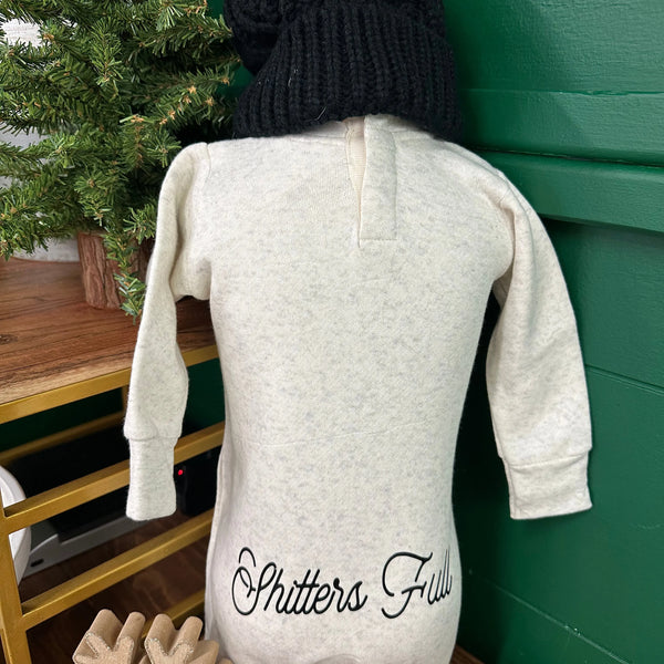 Because even the littlest ones deserve to get in on a Christmas movie classic! This cozy natural heather fleece one-piece keeps baby warm and snuggly while adding just the right touch of subtle holiday humor — “Shitter’s Full” printed on the back for the perfect nod to National Lampoon’s Christmas Vacation.